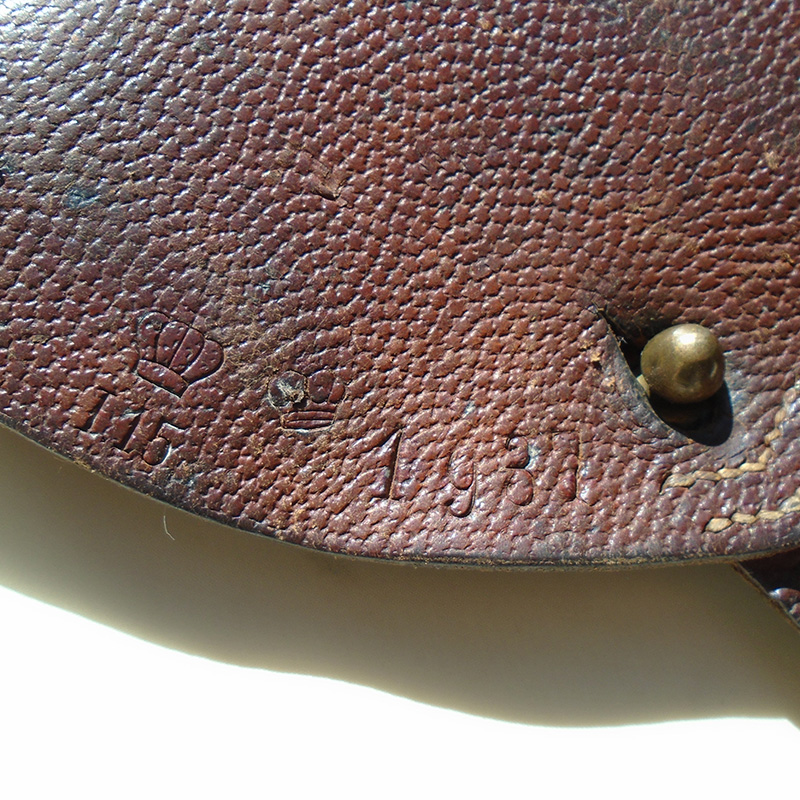 Estado de Conservação: 90% – EXCELLENT!!! Coldre sueco em couro para a pistola FN Browning Modelo 1903 (ou a cópia local Husqvarna M/07). Marcas visíveis indicam a unidade (15° Regimento de Infantaria) e a data “1937”. O coldre mostra marcas de uso mas está intregro e sem reparos ou usos.
