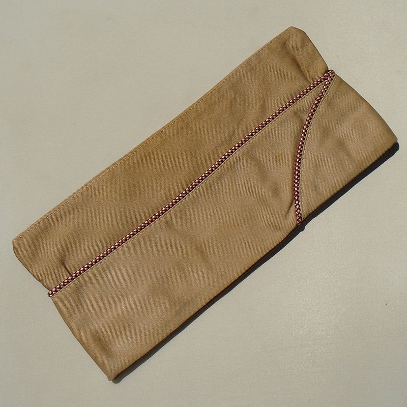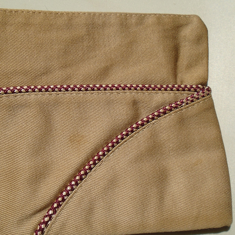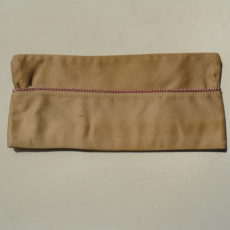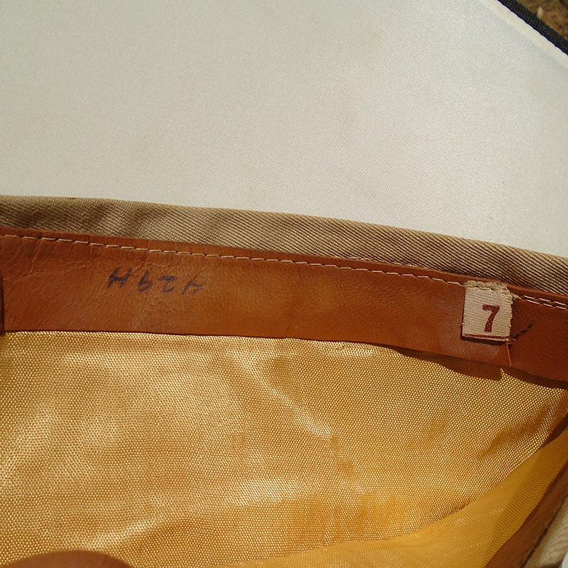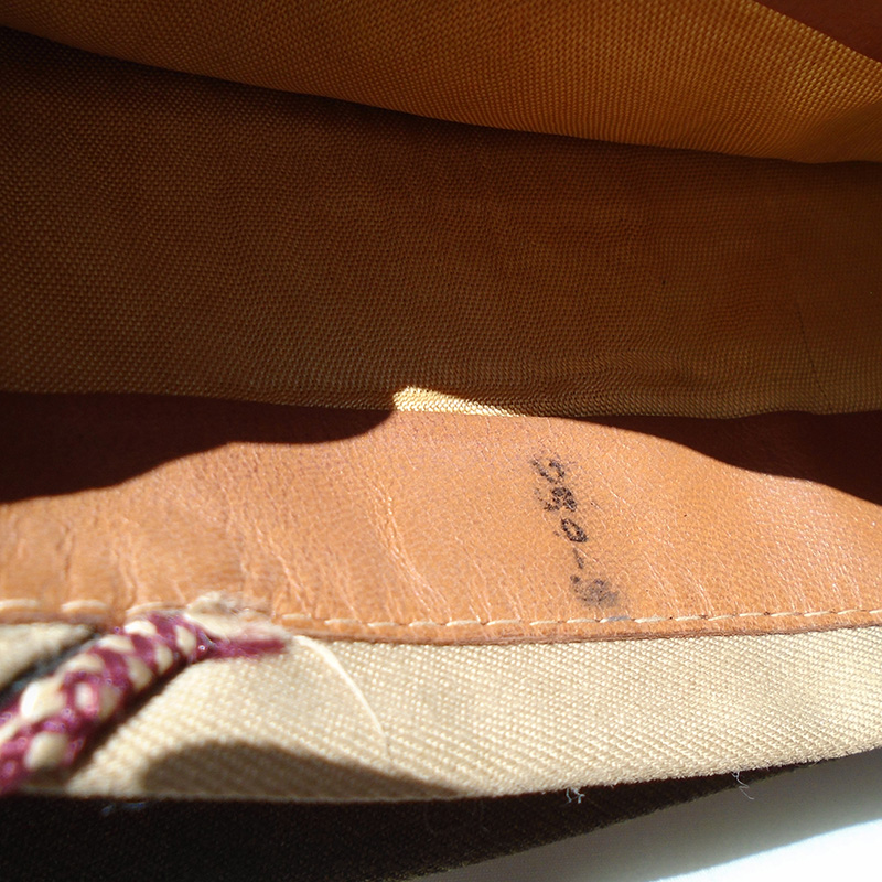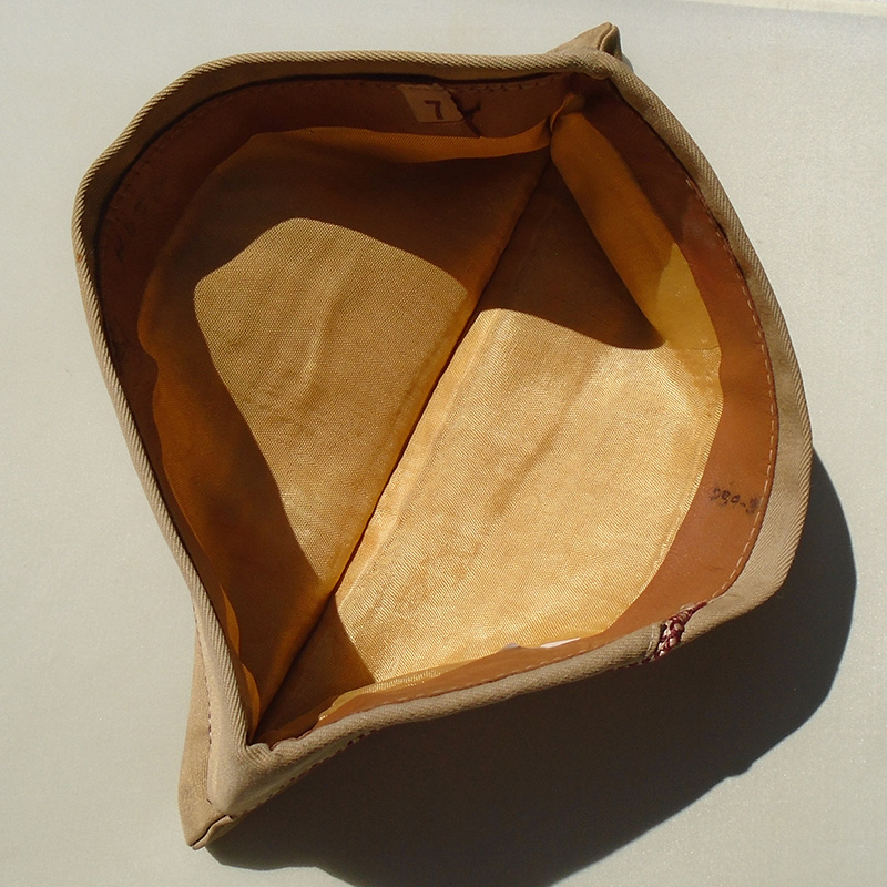 Estado de Conservação: 85%. Bibico na cor caqui fabricado em brim de algodão em perfeito estado de conservação. Abas de couro internas intactas, mas com sinal de uso de suor. Com etiqueta tamanho 7. Cordão nas cores branca e bordo indicando ser do Corpo Médico do Exército Americano. Peça da 2ª Guerra.