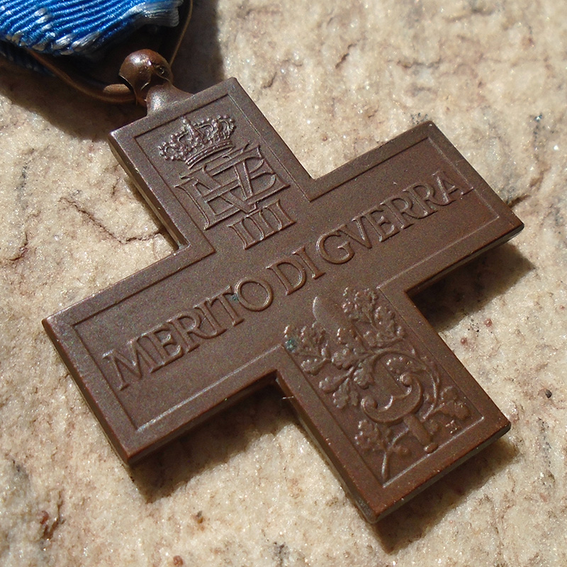 A Cruz de Mérito Militar Italiana foi instituída pela primeira vez em 1918 para o pessoal que serviu na I Guerra Mundial. Esta versão é chamada de Tipo I e traz uma fita com listras azul e branco. A Condecoração permaneceu inalterada até 1941. A face frontal apresenta a imagem de uma estrela de 5 pontas que emana raios em todas as direções. No reverso há no braço superior as letras coroadas “V. E. III”, fazendo menção ao Rei Victor Emanuel III. O reverso foi alterado em 1941 através de um decreto, onde passou a possuir a inscrição “CROCE AL VALORE MILITARE” sob as letras coroadas. Outras inscrições podem ser observadas, como “AL VALOR MILITARE” e “VALORE MILITARE”. Esta versão é chamada de Tipo II e apresenta fita na cor azul. Após a Guerra, a coroa e a cifra real foram substituídas pelas letras entrelaçadas “RI”, República Italiana, e a inscrição predominante passou a ser “AL VALORE MILITARE”. Esta última versão é chamada de Tipo III e apresenta fita com listras nas cores azul e branca.
