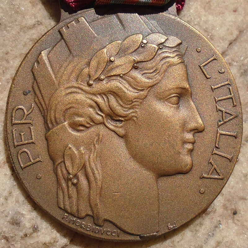 Estado de Conservação: 85%. Medalha do Reino Italiano fabricada em bronze. Marcada na base da face frontal “P. MORBIDUCCI” e na base do reverso “SACCHINI-MILANO”.