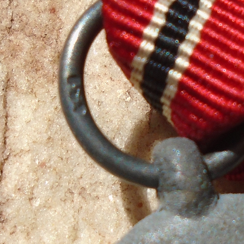 Estado de Conservação: 85%. A medalha é fabricada em zinco, retendo praticamente toda a pintura cinza e e prata, embora um pouco desbotada. Feito maravilhoso de cores por igual. Sem marcação de fabricante (embora pareça que tenha algum número marcado na argola, mas não consegui identificar, também não sei se pode ser uma marca de fabricação). Devido a inexistência de marcação, pode-se situar sua produção como sendo uma das primeiras, logo em 1942, sendo uma condecoração de contrato da Wehrmacht para entrega direta ao condecorado.