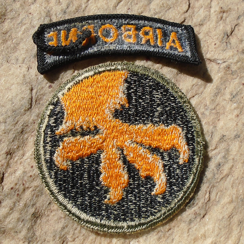 Conservação: 80%. Patch original da 2ª Guerra. Retirado de uniforme. Tab “Airborne” réplica.