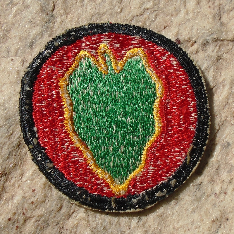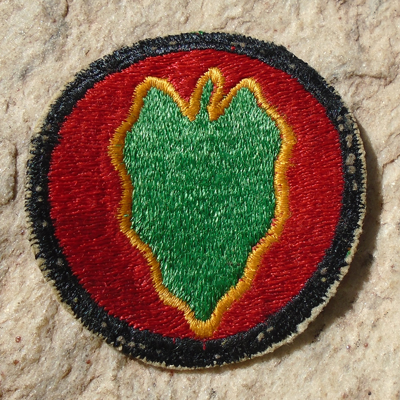 No começo da 2ª Guerra Mundial, a 24ª Divisão de Infantaria era uma unidade regular do exercito com quartel general em Honolulu no Havaí, no quartel Schofield. A Divisão teve poucas baixas durante o bombardeio de Pearl Harbor em 7 de Dezembro de 1941. A 24ª foi designada para a devesa do norte de Oahu contra uma invasão inimiga. Em Setembro de 1942, a Divisão foi deslocada para a costa leste da Austrália onde recebeu treinamento em ambiente de selva, assim como foi preparada para a “Reckless Task Force” de desembarque na Blue Beach em Tanahmerah Bay, Nova Guiné Francesa, onde a 24ª capturou a base aérea de Hollandia. Em 34 dias de combate, a 24ª capturou os campos aéreos de Sorido e Borokoe, matando ou capturando mais de 2.200 japoneses no processo. Em Outubro de 1944, a Divisão fez desembarques de assalto em Red Beach, perto de Tackcban, Leyte, capturando Jaro, assim como a grande força japonessa de “Break Neck Ridge”, perto de Pinamopoan. Elementos da 24ª foram designados para a Força Tarefa Western Visayan, desembarcando na costa sul de Mindoro e participando na captura da Ilha de Marinduque. Elementos da Divisão também auxiliaram a 11ª Divisão de Pára-quedistas no ataque a Manila; assalto a Subic bay; combates em “Zig-Zig Pass” e participação em desembarque anfíbio em Corregidor. Na Ilha Filipina de Mindanao, a 24ª capturou Digos e a posição fortificada japonesa de Davao, assim como o campo de pouso Libby. A 24ª continuou se envolvendo em ações depois da Campanha das Filipinas ter terminado, quando seguiu para a ocupação no Japão. A Divisão combateu em 3 Campanhas ao custo de 7.000 homens.