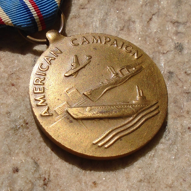Pelo serviço durante a 2ª Guerra Mundial no Teatro de Operações Americano. A Medalha da Campanha Americana foi criada por Ordem Executiva em 6 de Novembro de 1942 e encerrada em 15 de Março de 1946. A medalha era concedida a qualquer membro das Forças Armadas que serviram no Teatro de Operações Americano druante o período de 7 de Dezembro de 1941 a 2 de Março de 1946, ou que foi condecorado por combate contra o inimigo. O serviço deveria ter sido por atuação por 1 ano nos Estados Unidos Continental ou 30 dias consecutivos fora dos Estado Unidos Continental, ou 60 dias não consecutivos fora dos Estados Unidos Continental, mas dentro do Teatro de Operações Americano. A condecoração foi desenhada pelo Instituto do Exército de Heraldry. A medalha é um disco circular de bronze mostrando um Cruzador da Marinha, um bombardeiro B-24 e um submarino inimigo afundando. Ao fundo podem ser vistos alguns edifícios representando os EUA.