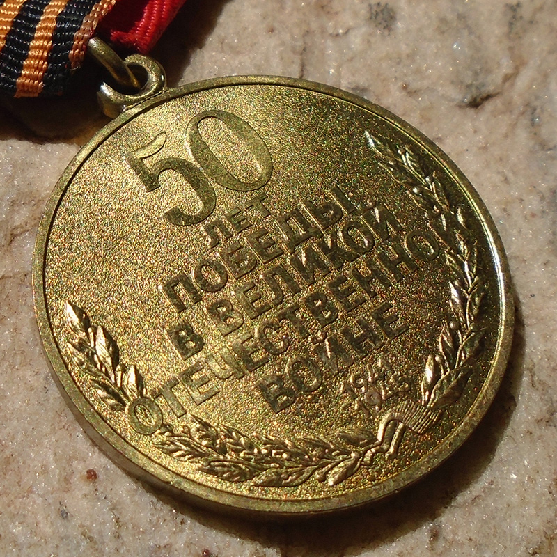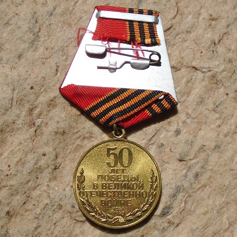 (“Юбилейная медаль «50 лет Победы в Великой Отечественной войне 1941–1945 гг.”).